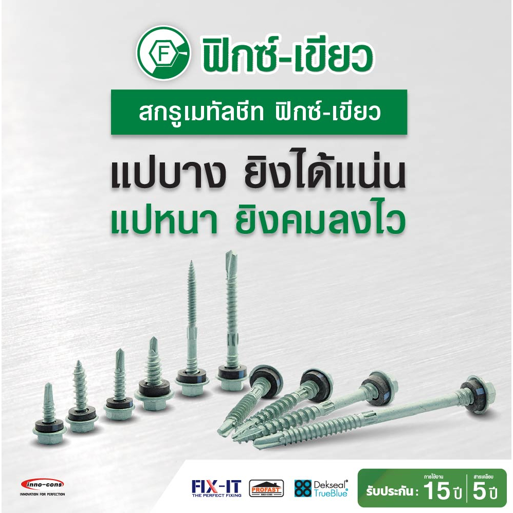 [FIX-IT] สกรูฟิกซ์-เขียว 12x3" สกรูยึดแผ่นเมทัลชีลที่มีฉนวน PU น๊อตยิงสรรไท Screw FIX-GREEN X-TITE
