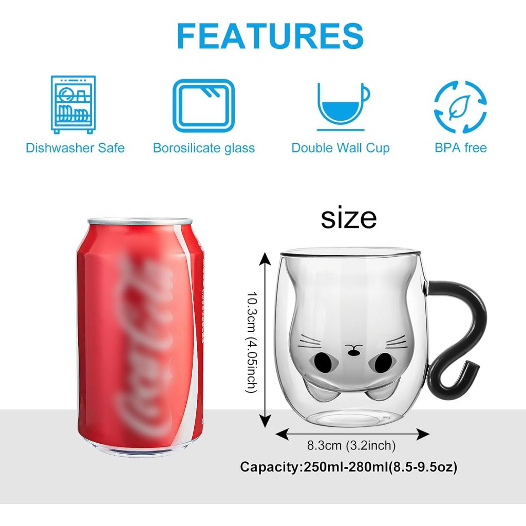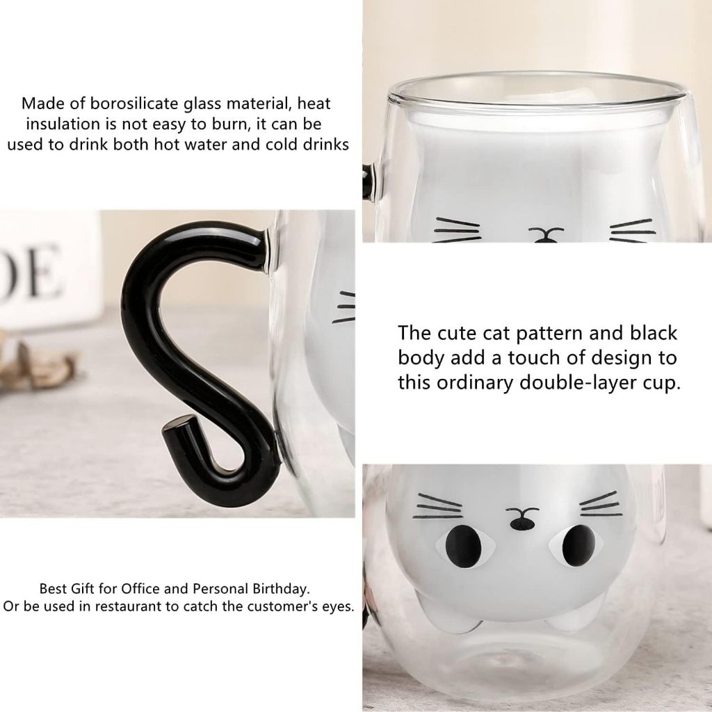 แมวน่ารักแก้ว300มิลลิลิตรคู่ผนังแก้ว น่ารัก ถ้วยที่มีการจัดการแมวคนรักของขวัญสําหรับผู้หญิง,ของขวัญคริสต์มาส