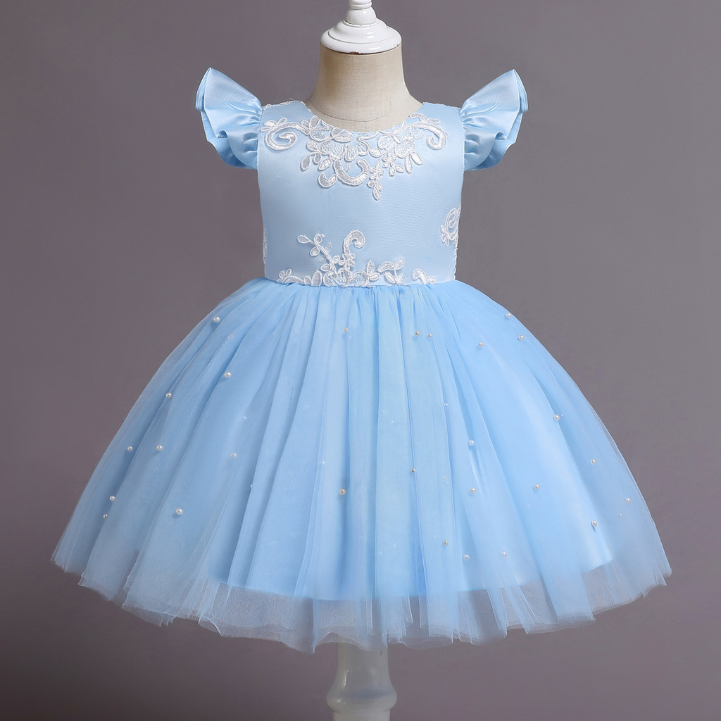 NNJXD สาวชุดเจ้าหญิงพรรค 1-5 ปี สีฟ้าชุดชุดเจ้าหญิงเลื่อมประดับด้วยลูกปัดชุดฤดูร้อน ที พวกคุณ โบว์ชุดเด็ก