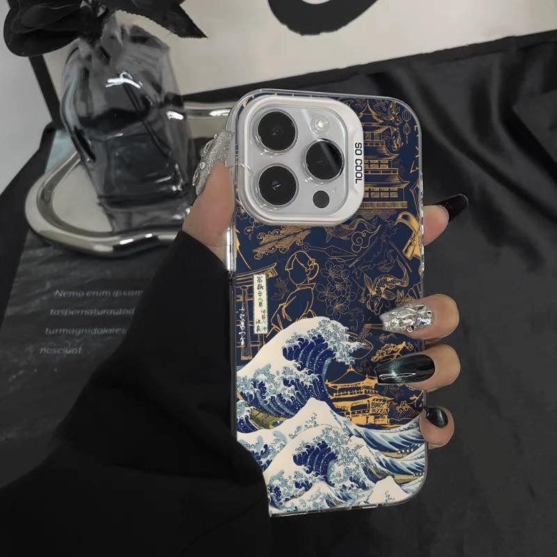 เคสคลื่นทะเลสําหรับ iPhone 16Pro 15 14 13 12 11 Pro Max XR 7 8Plus ปลอกป้องกันหน้าจอกันกระแทก