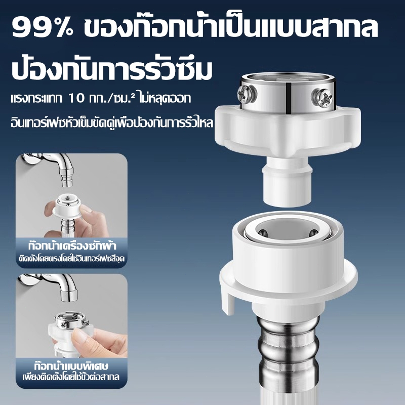 สายน้ำเข้า สายน้ำดี หัวต่อก๊อก เครื่องซักผ้า 1M/1.5M/2M/3M/5M พร้อม ข้อต่อก๊อกน้ำ ใช้ได้ทุกรุ่น ทุกยี้ห้อ ฝาหน้า ฝาบน