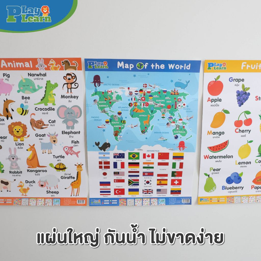 Play Plearn Kid โปสเตอร์ติดผนัง แบบหัดอ่าน สำหรับการเรียนรู้ Educational Posters A2