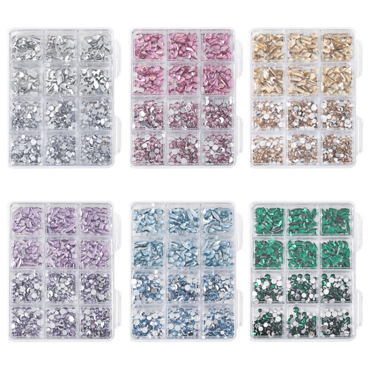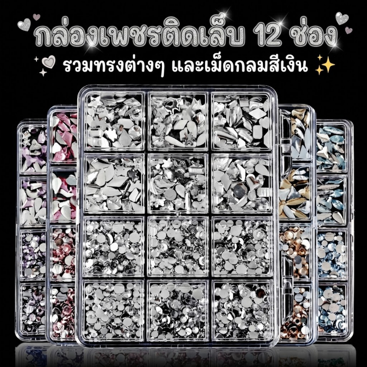 เพชรติดเล็บ พลอยแต่งเล็บ เกรดพรีเมียม กล่อง 12 ช่อง คริสตัลแต่งเล็บ อะไหล่ทำเล็บ เพชรแฟนซี หลายทรง