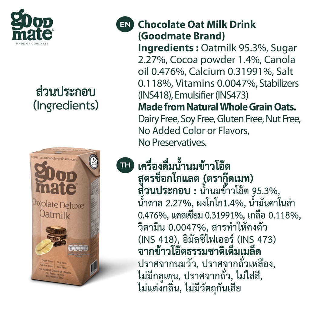 Goodmate นมโอ๊ต สูตรออริจินอล ขนาด 180 มล. (9 กล่อง) + สูตรช็อกโกแลตดีลักซ์ ขนาด 180 มล. (9 กล่อง) - (1 ลัง: 18 กล่อง)