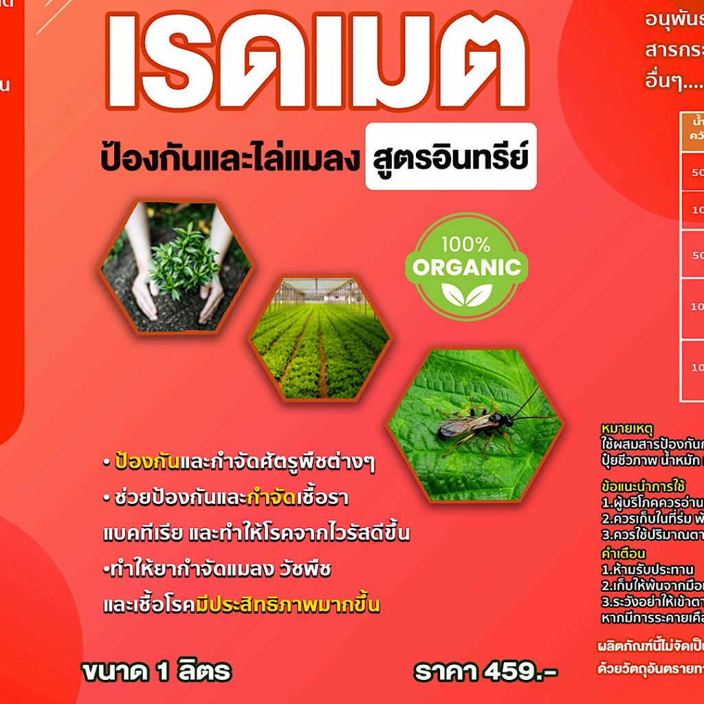 เรดเมต ไล่แมลงแบบอินทรีย์ ไล่หนอน เพลี้ย มด ผีเสื้อ ปลวก ขนาด 1ลิตร