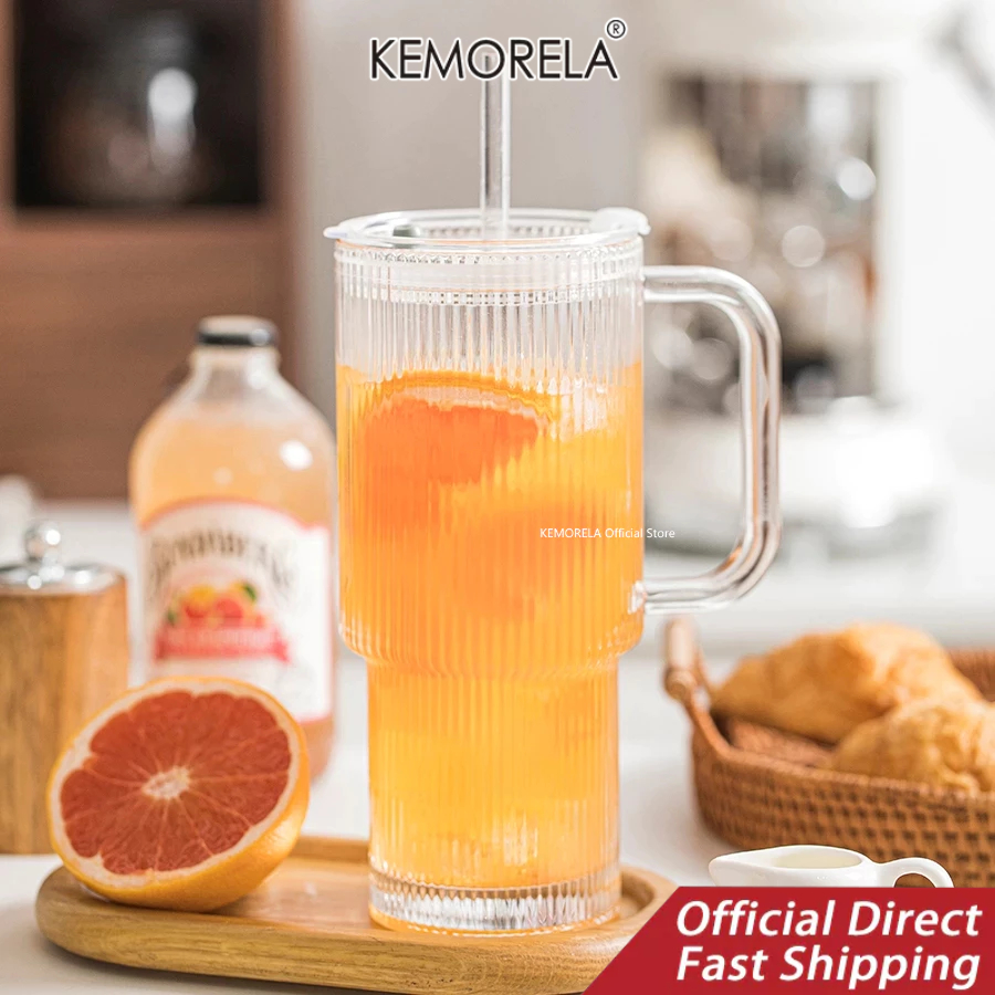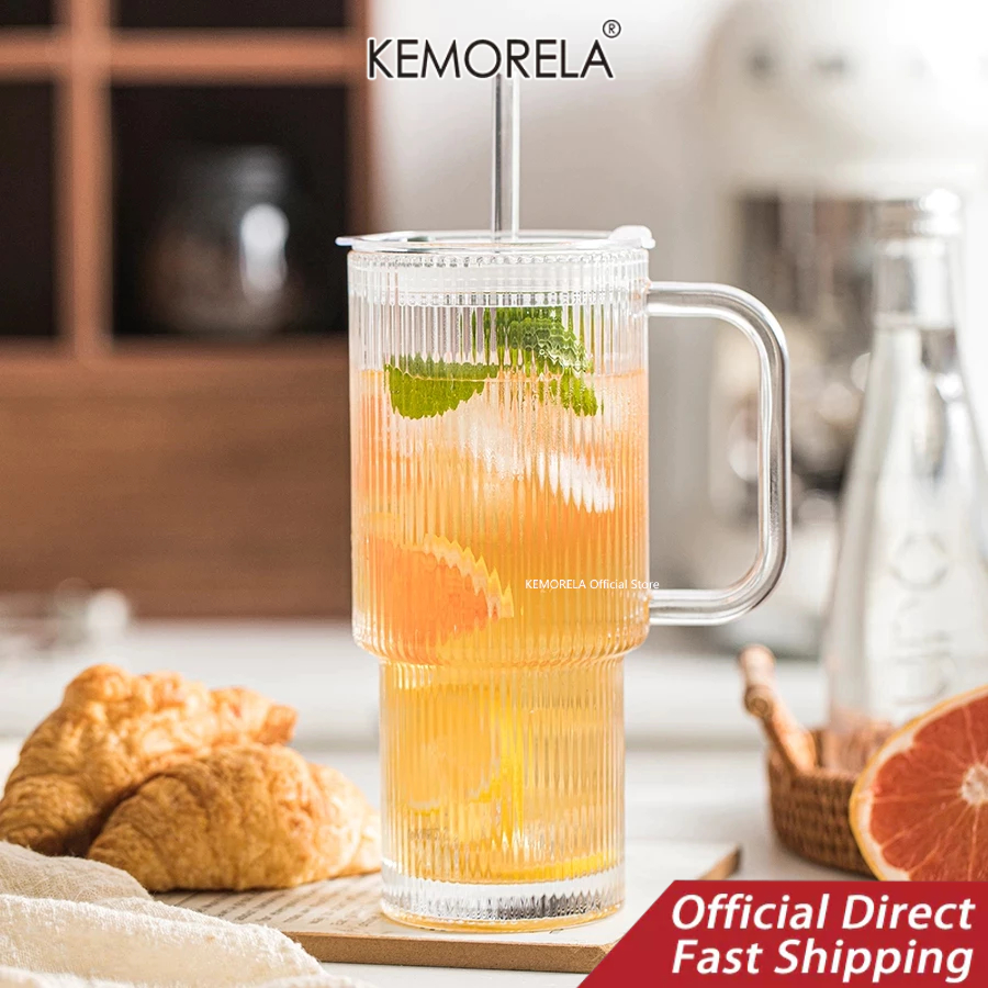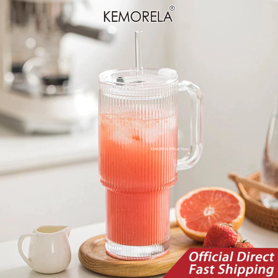 KEMORELA 1/2ชิ้น,26ออนซ์แก้วยางแก้วที่มีการจัดการ&ฝาถ้วยกาแฟเย็นขนาดใหญ่พร้อมหลอด,แก้วที่ทันสมัยสําหรับเครื่องดื่มเย็นและร้อน,ถ้วยเดินทางสุนทรียศาสตร์สําหรับสมูทตี้,ชา,และน้ําผลไม้