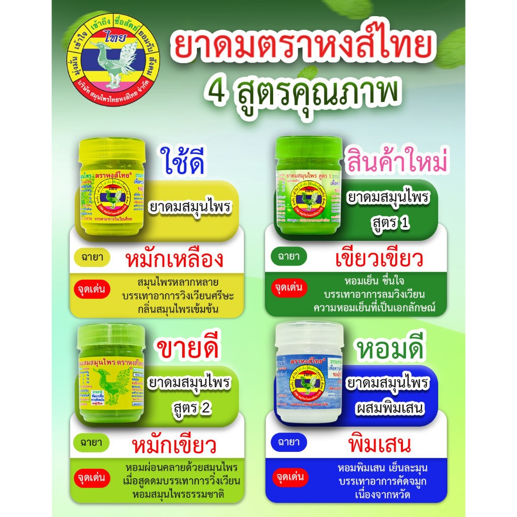 HongThai Herb Inhaler หงส์ไทย ยาดมสมุนไพร ตราหงส์ไทย สูตร 1/2/ สีเหลือง [สินค้ามีให้เลือก 5 แบบ] ยาดม สมุนไพร ดั้งเดิม