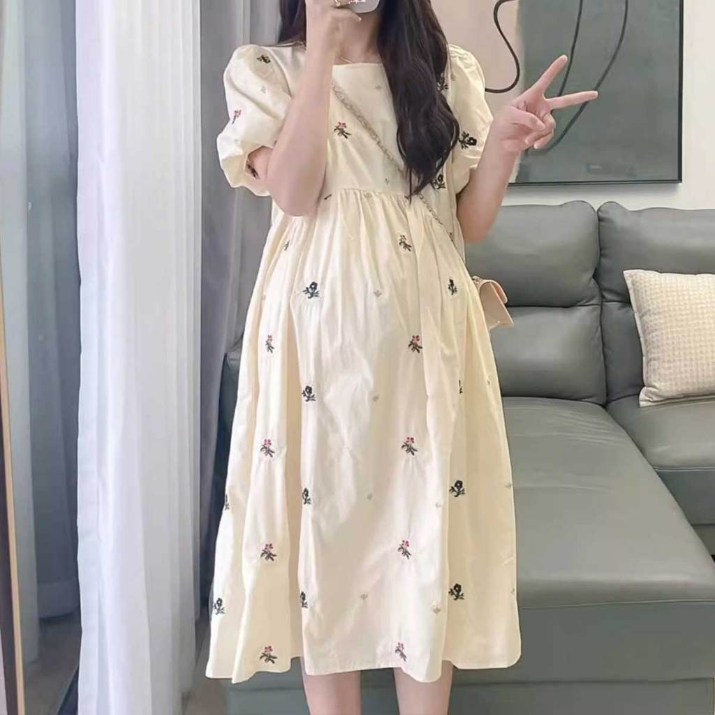 เดรสคนท้องสไตล์มินิ แขนตุ๊กตา ลายดอกอ่อนหวาน