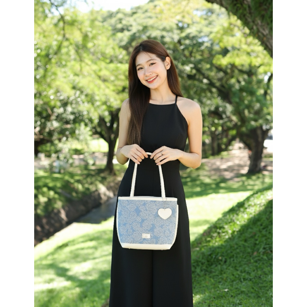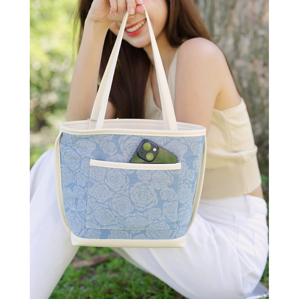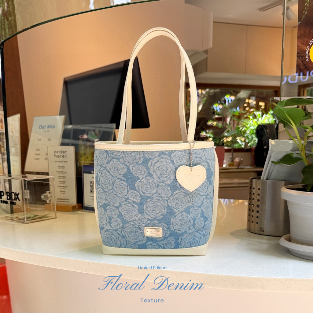 The Bucket Tote♡Limited Edition ผ้ายีนส์กระเป๋าทรงBucketใส่ไอแพด สะพายบ่าได้ ผ้ายีนส์Floral Denim