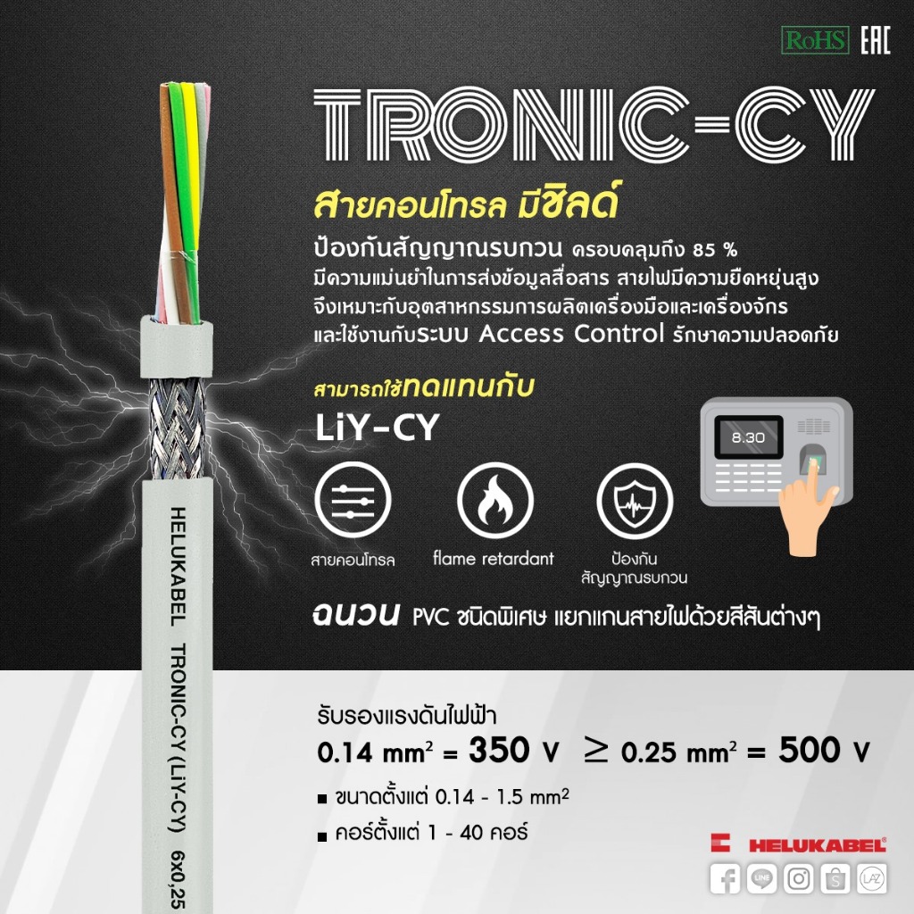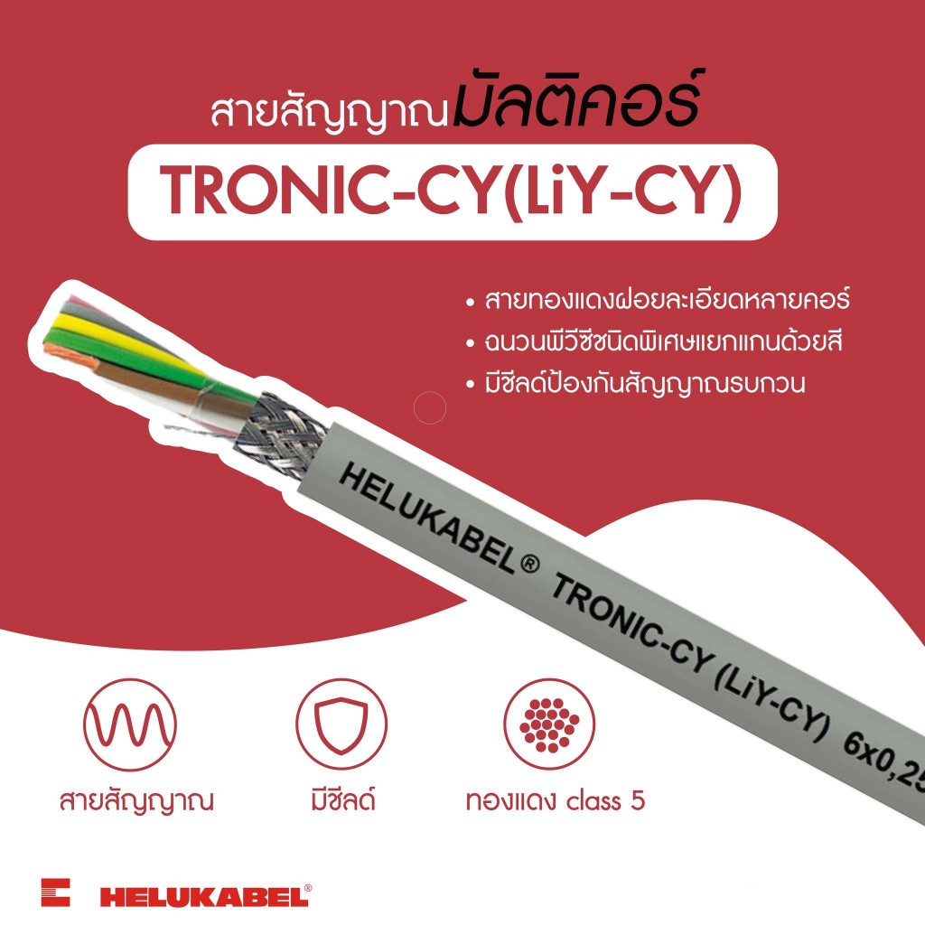 TRONIC-CY (LiY-CY) 3*0.5 3*0.75 3*1.0 3*1.5 SQ.MM. สายชีล ″HELUKABEL″ (100M/ROLL)