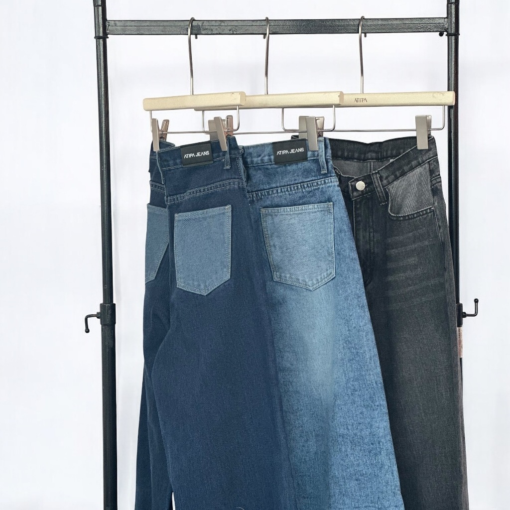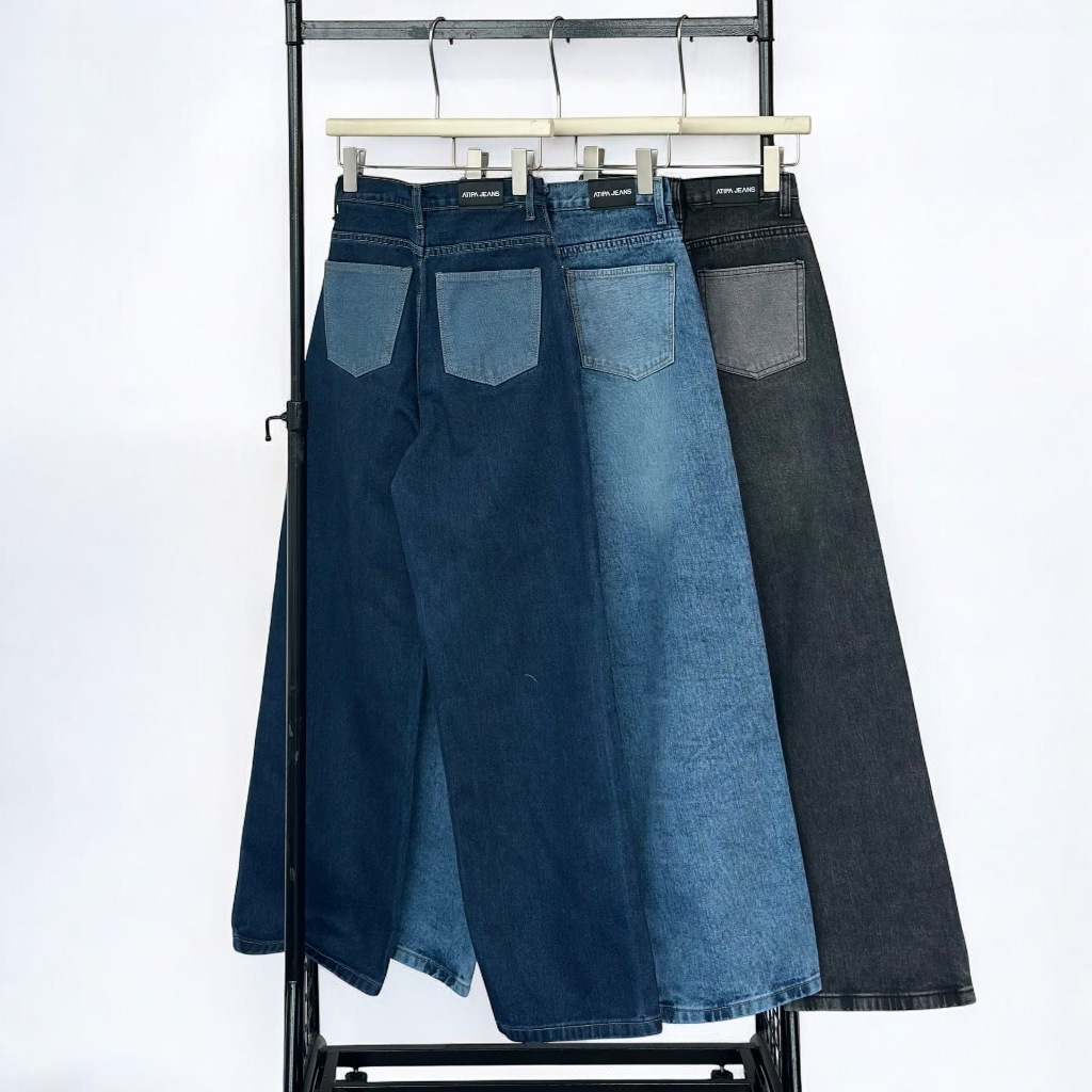 Atipashop - RADIANT NOIR ATP JEANS กางเกงยันส์ ขายาว ทรงกระบอกกลาง ดีเทลกระเป๋าสีทูโทน