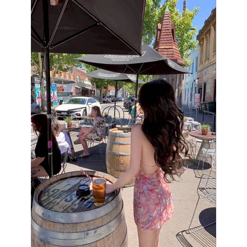 KITTI -T Dress เดรสลายสวยๆ ตัวชุดเป็นผ้ากริตเตอร์ ช่วงคอมีสายคล้องคอ ด้านหลังเปิดเว้า(กลางหลัง)