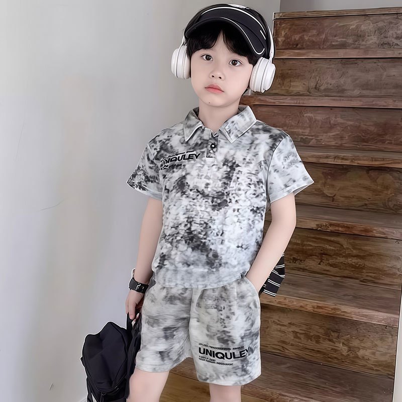 PRINCESS KESLI ชุดเสื้อโปโลเด็ก เสื้อแขนสั้น และกางเกงขาสั้น สไตล์เกาหลี เด็กชาย 2-14 ปี