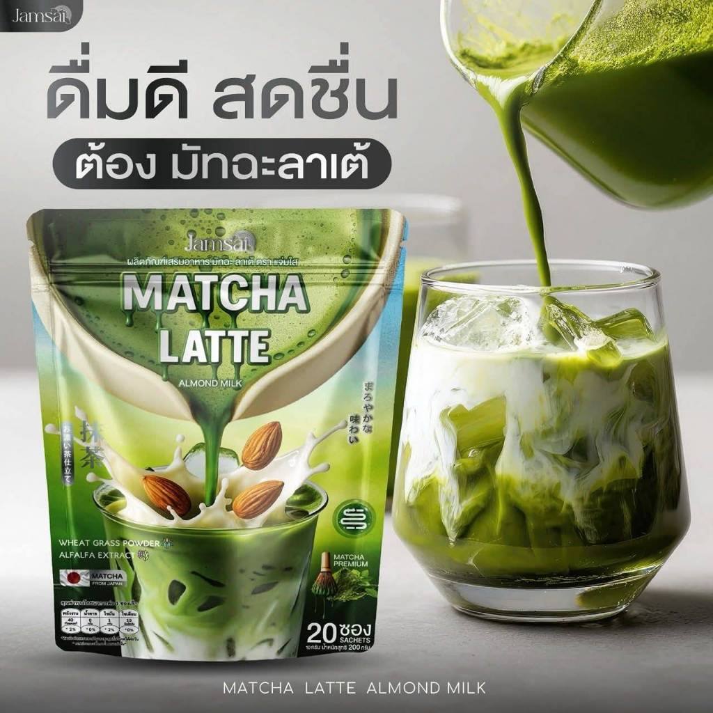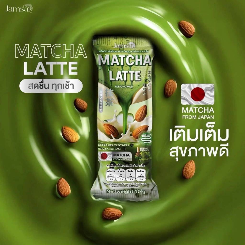 Jamsai Matcha Latte Almond Milk แจ่มใส มัทฉะ ลาเต้ ชาเขียว มัจฉะ พรีเมียม ญี่ปุ่น อิ่มนาน ไม่มีน้ำตาล