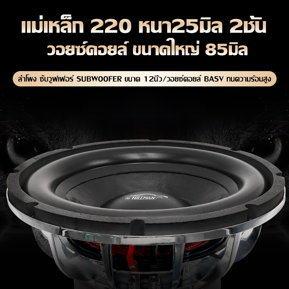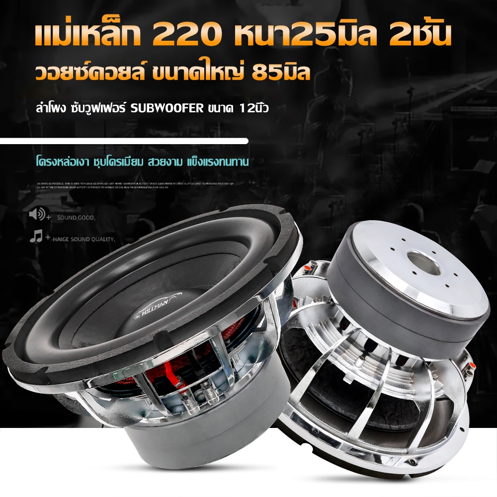HILMAN ลำโพงซับดอกซับ12นิ้ว แม่เหล็ก 220 หนา25มิล 2ชั้น โครงหล่อเงา ชุบโครเมี่ยม สวยงาม แข็งแรงทนทาน