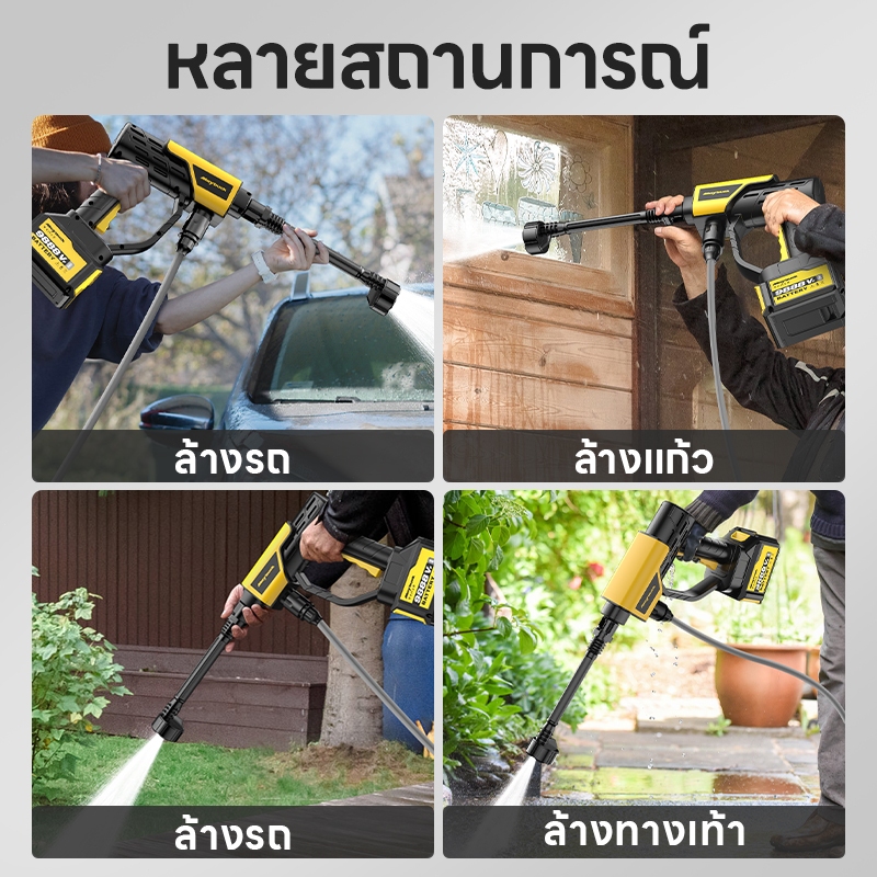 Maybuck เครื่องล้างรถแบบพกพาแรงดันสูง ปืนฉีดน้ำแรงดันสูง เครื่องทำความสะอาดแบบไร้สาย โฟมล้างรถ