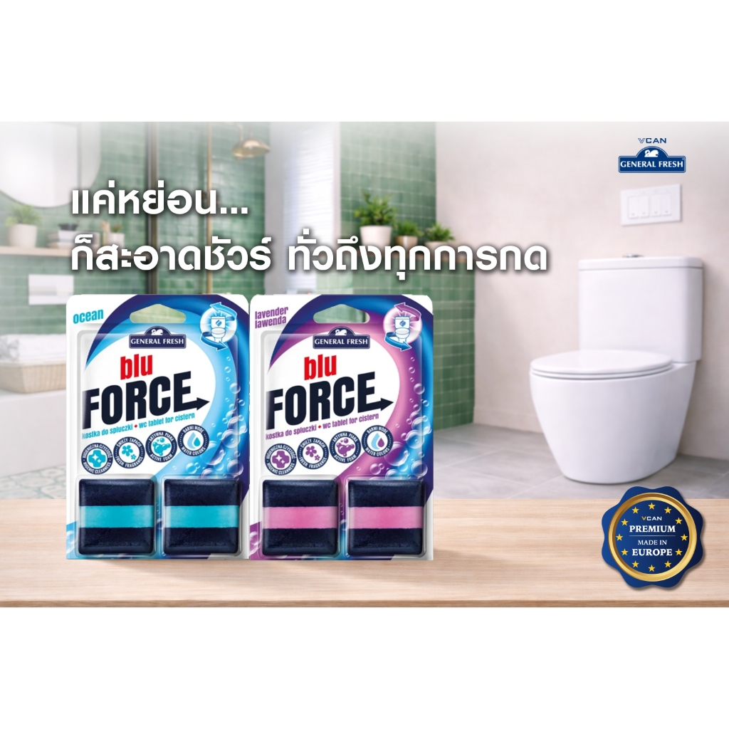BLU FORCE ก้อนใส่ถังพักน้ำชักโครก ก้อนดับกลิ่นชักโครก กลิ่นโอเชียน ทำความสะอาดโถสุขภัณฑ์ 50g x2