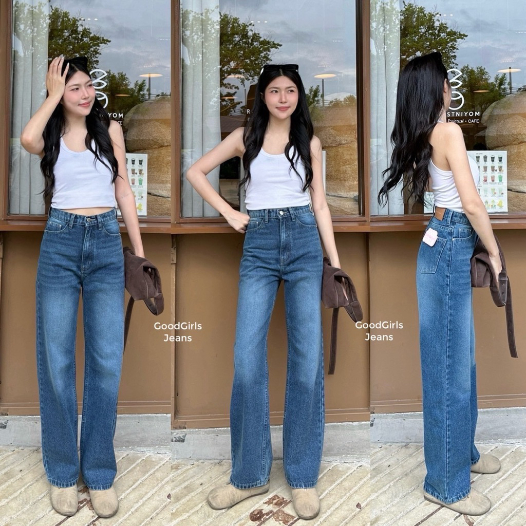 ʀɪʟᴇʏ🎀กางเกงยีนส์ ขากระบอกกลาง เอวสูง ผ้าไม่ยืด ผ้าหนานุ่ม ใส่สบาย กางเกงยีนส์ผู้หญิงPPZ PANT