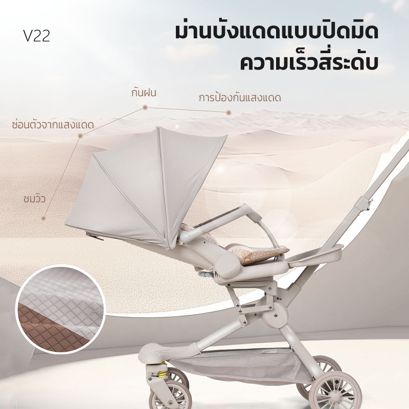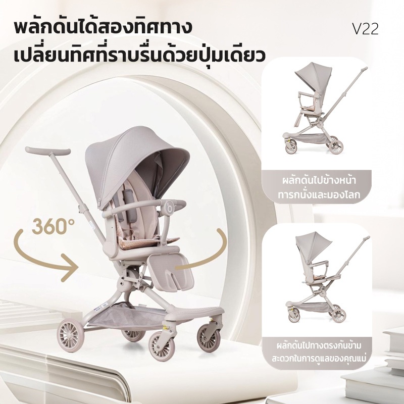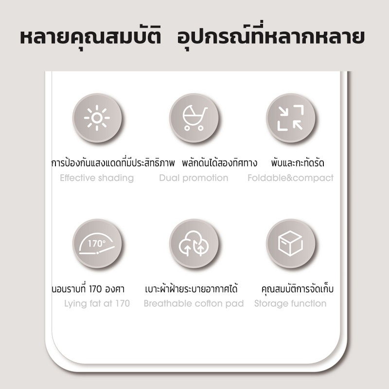 MISUTA รถเข็นเด็ก ที่นั่งปรับเอนได้ 3 ระดับ ดัน 2 ทาง ร่ม ร่มกันแดด พับได้ พกพาสะดวก รถเข็นเด็กพับได้