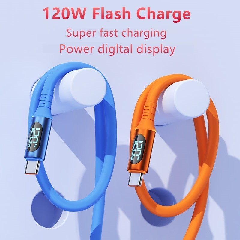 120W 6A USB to Type C Type-C to C Digital Display Data Cable QC PD Fast Charger Data Cable for lOS Huawe
