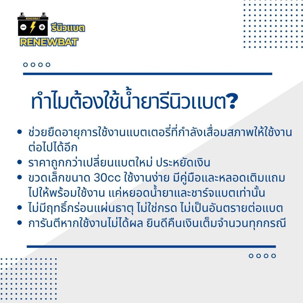 [ซื้อ 1 แถม 1] น้ำยาฟื้นฟูแบตเตอรี่ (2 ขวด) Renewbat