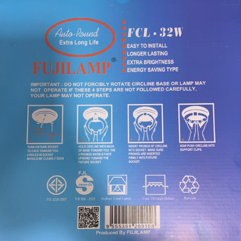 ฟูจิแลมป์ FUJILAMP หลอดไฟวงแหวน ลูออเรสเซนต์ 32W 1780LM แสงขาว Daylight ขนาดมาตรฐาน