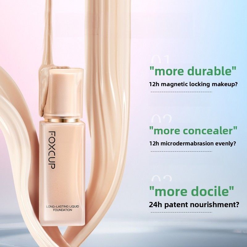 Foxcup Liquid Foundation ผิวแห้งผิวมันสดชื่นควบคุมความมันไร้ที่ติธรรมชาติกันน้ํา Sweatproof ที่มองไม่เห็นรูขุมขน Facial Foundation แต่งหน้า