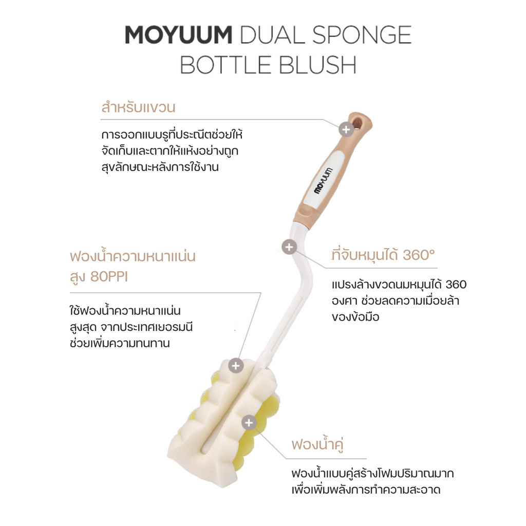 Moyuum แปรงล้างขวดนม แปรงล้างจุกนม แบบฟองน้ำ แบบซิลิโคน