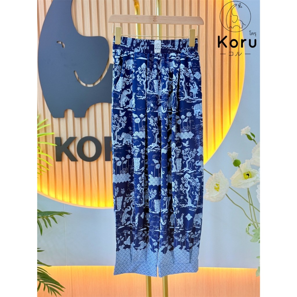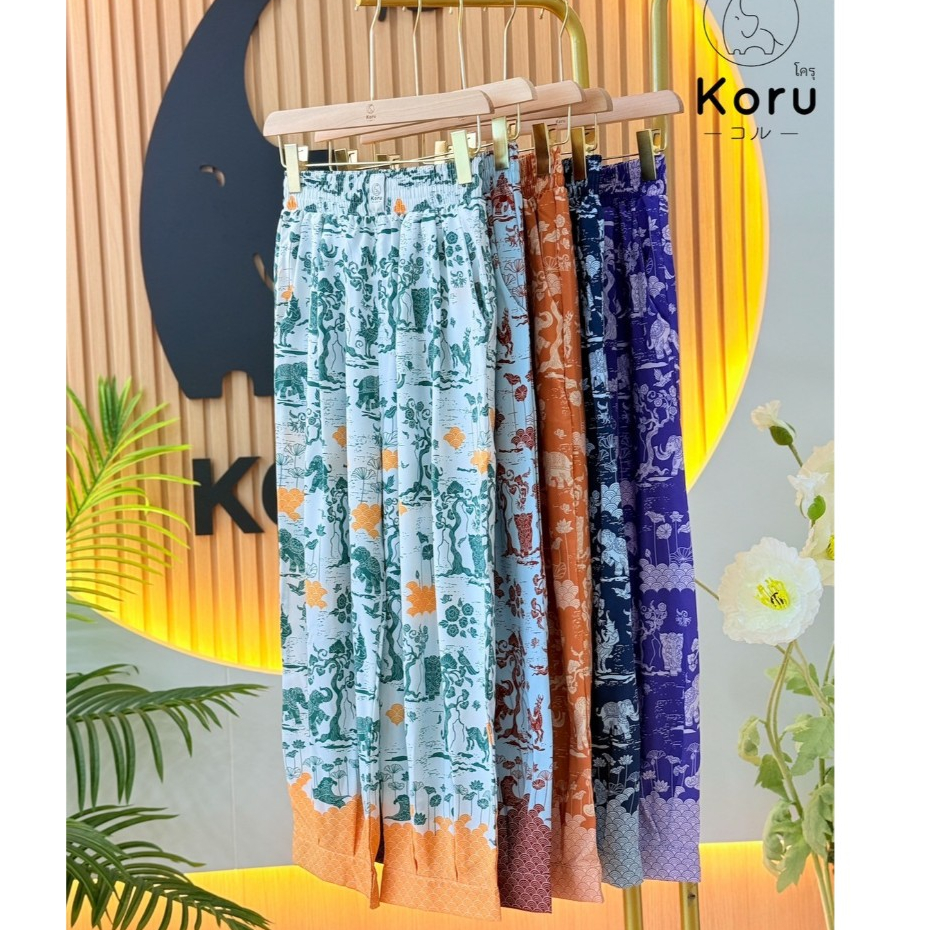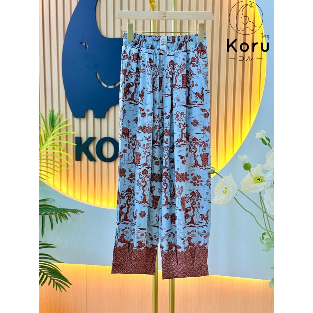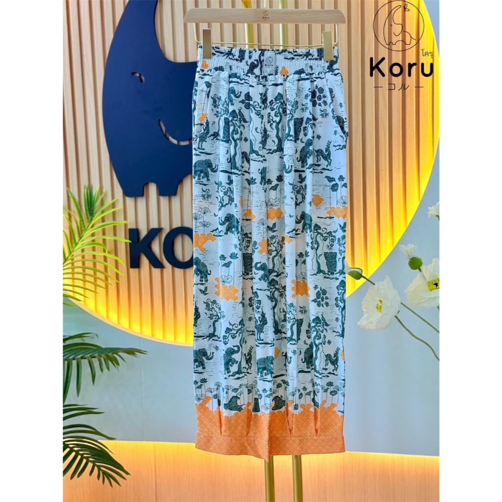 KORU กางเกงขาจีบ ลายช้างหิมพานต์
