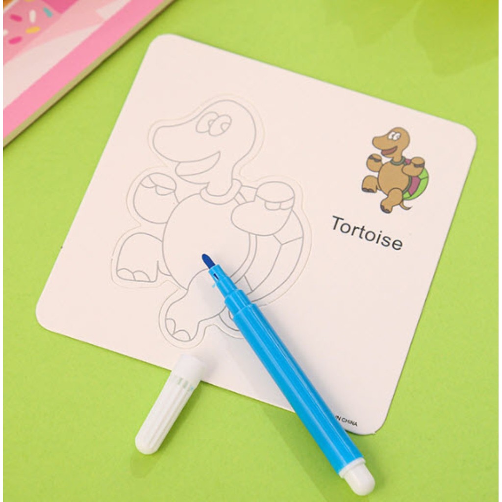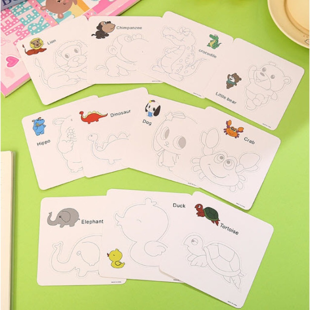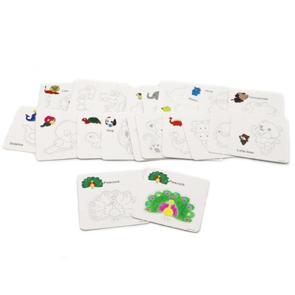 S0589 การ์ดคำศัพท์ 3ใบ/แพ็ค +ฟรี ปากกาสี 3ด้าม ระบายสี ลายสัตว์ ภาษาอังกฤษ เสริมพัฒนาการเด็ก ศิลปะ