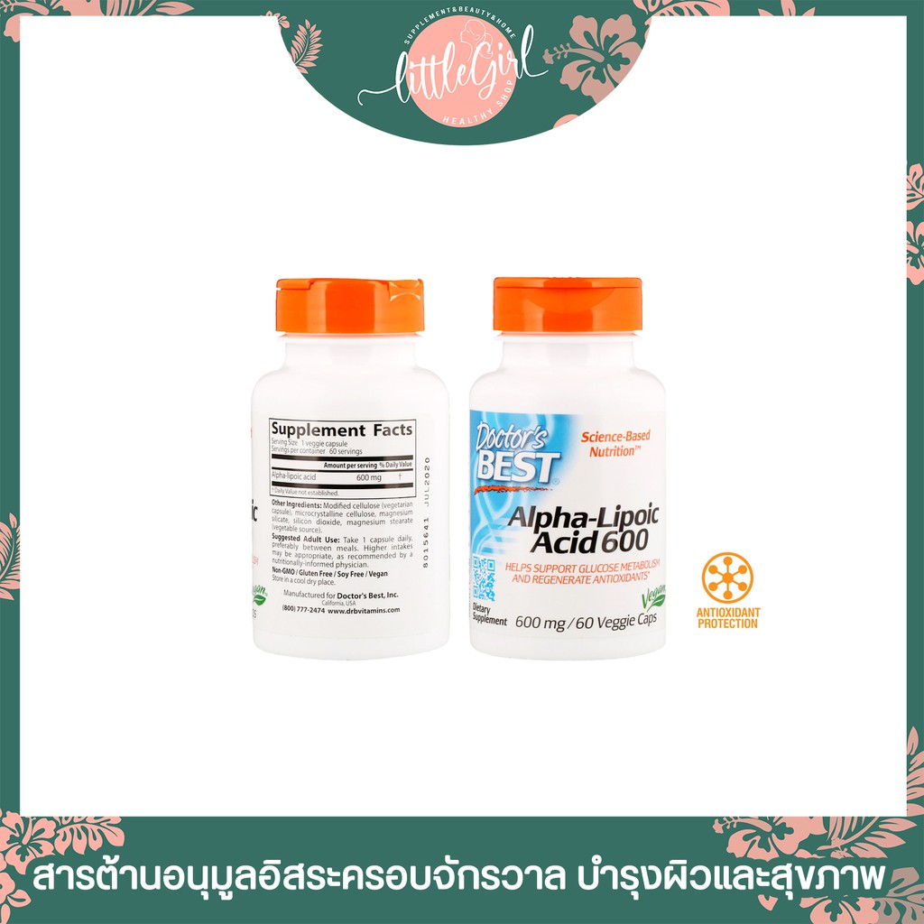 (พร้อมส่ง) กรดอัลฟ่าไลโปอิก (ALA) Doctor’s Best Alpha Lipoic Acid 600mg 60 Veggie Caps