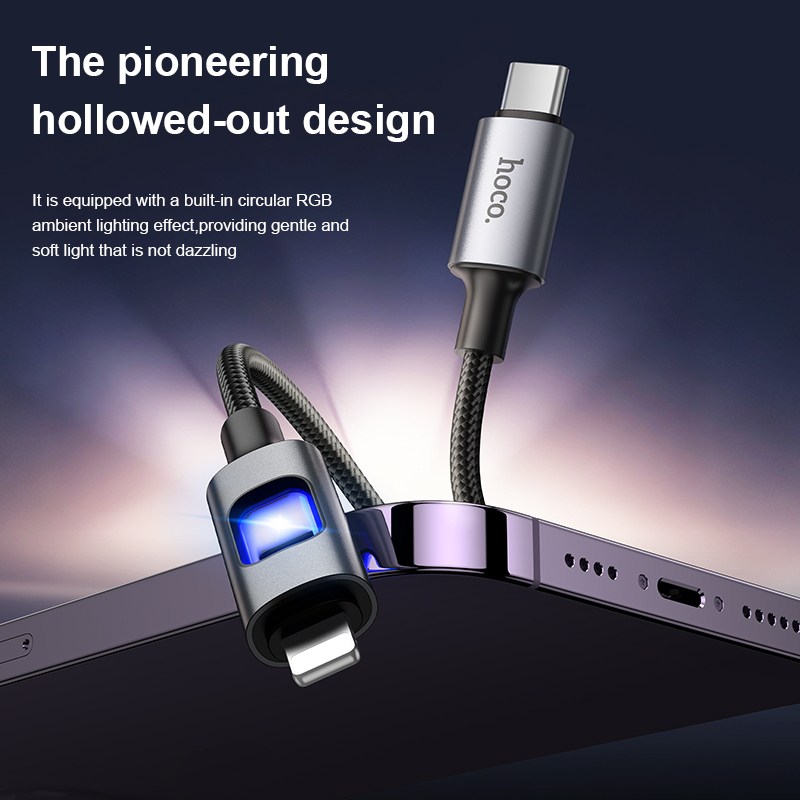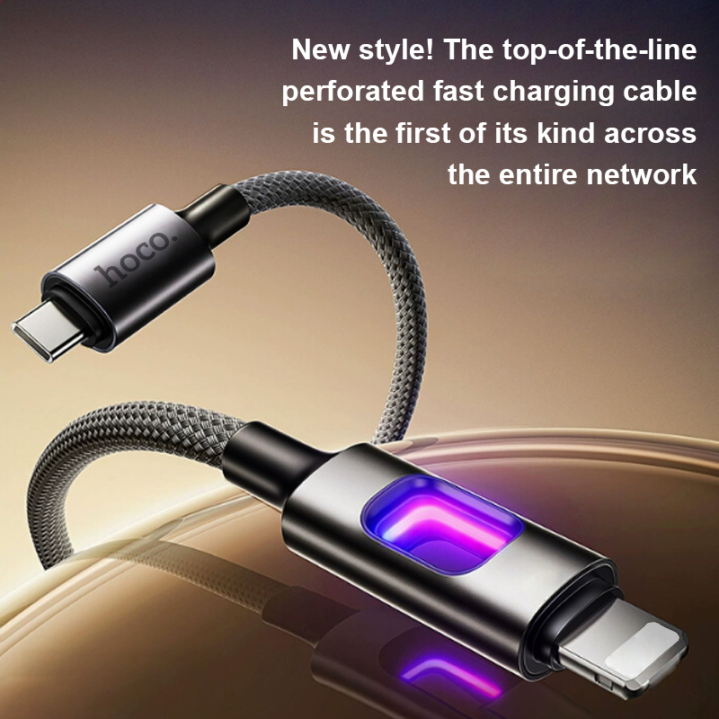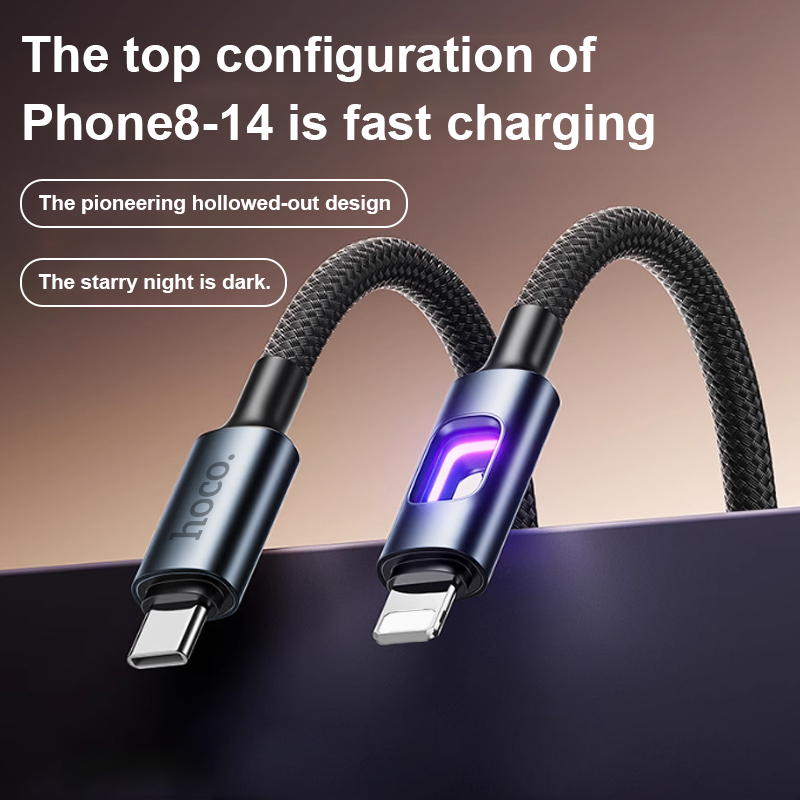 hoco. U144 สายชาร์จไนล่อนเร็ว 60W พร้อมไฟ LED รองรับ PD ชาร์จเร็ว เข้ากันได้ TypeC/IP ถ่ายโอนข้อมูลได้