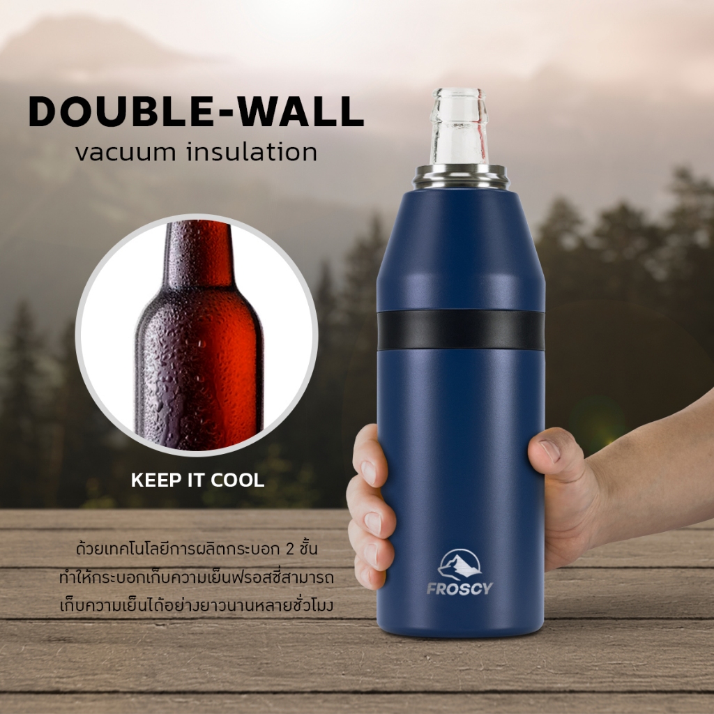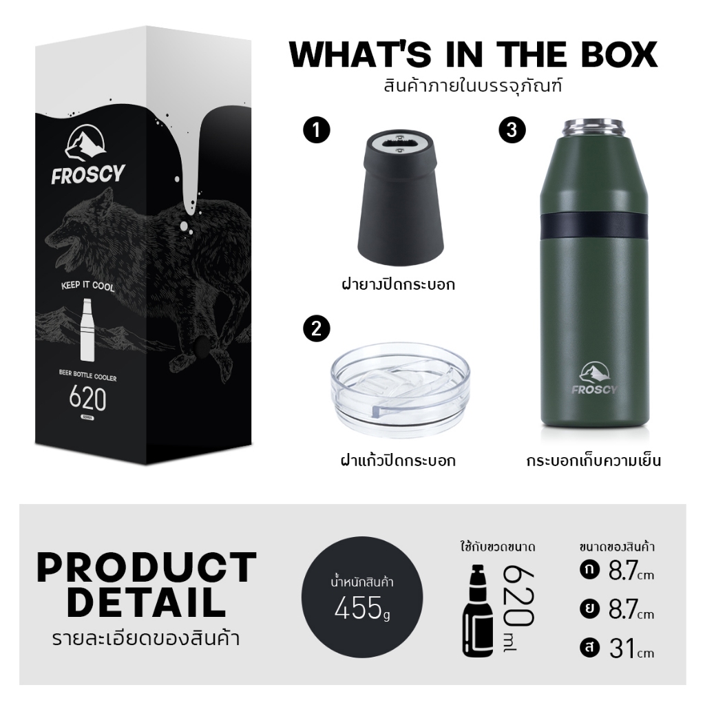 FROSCY แก้วเก็บความเย็นสแตนเลส สุญญากาศ (สีเขียวทหาร) กระบอกเก็บความเย็น เก็บเย็นได้นาน
