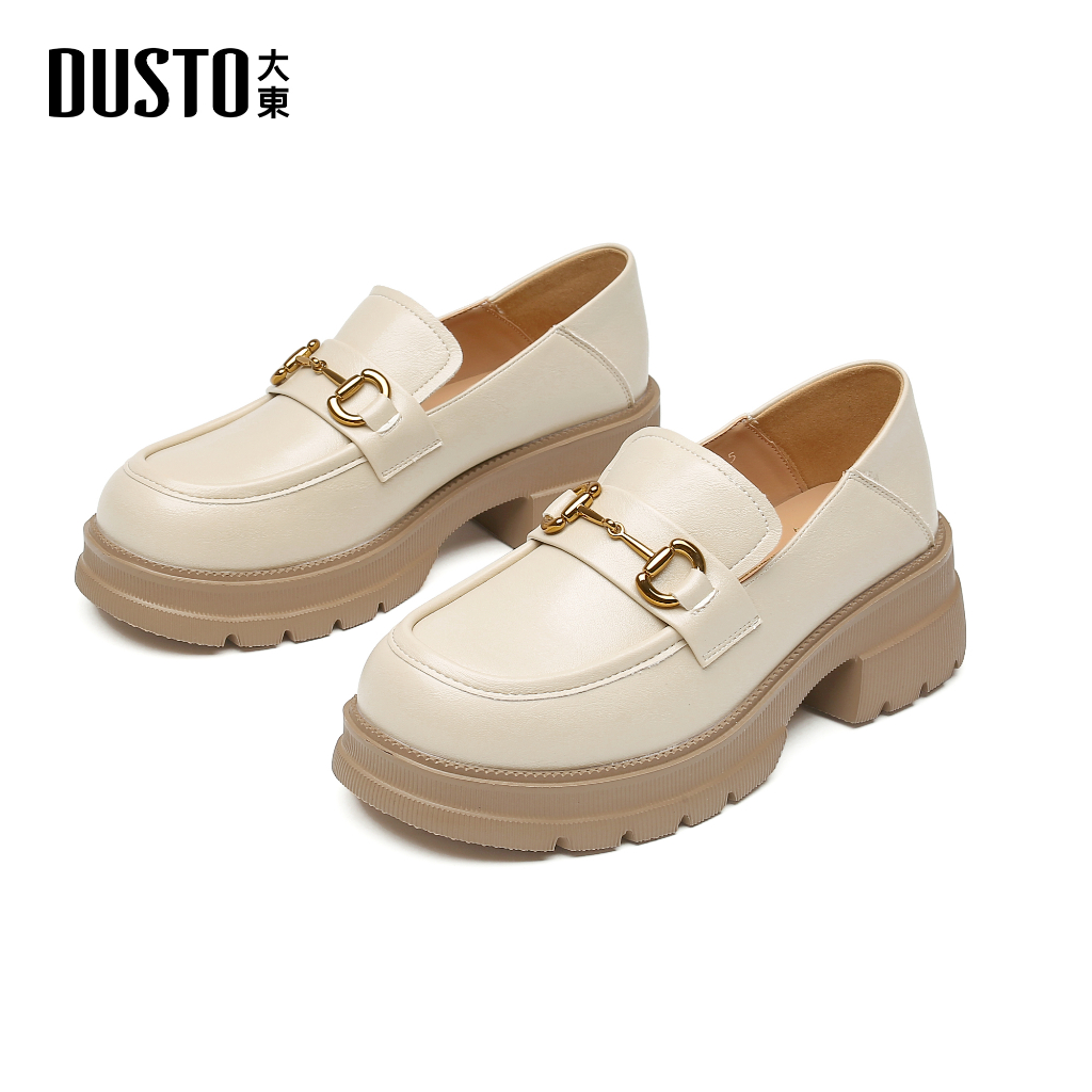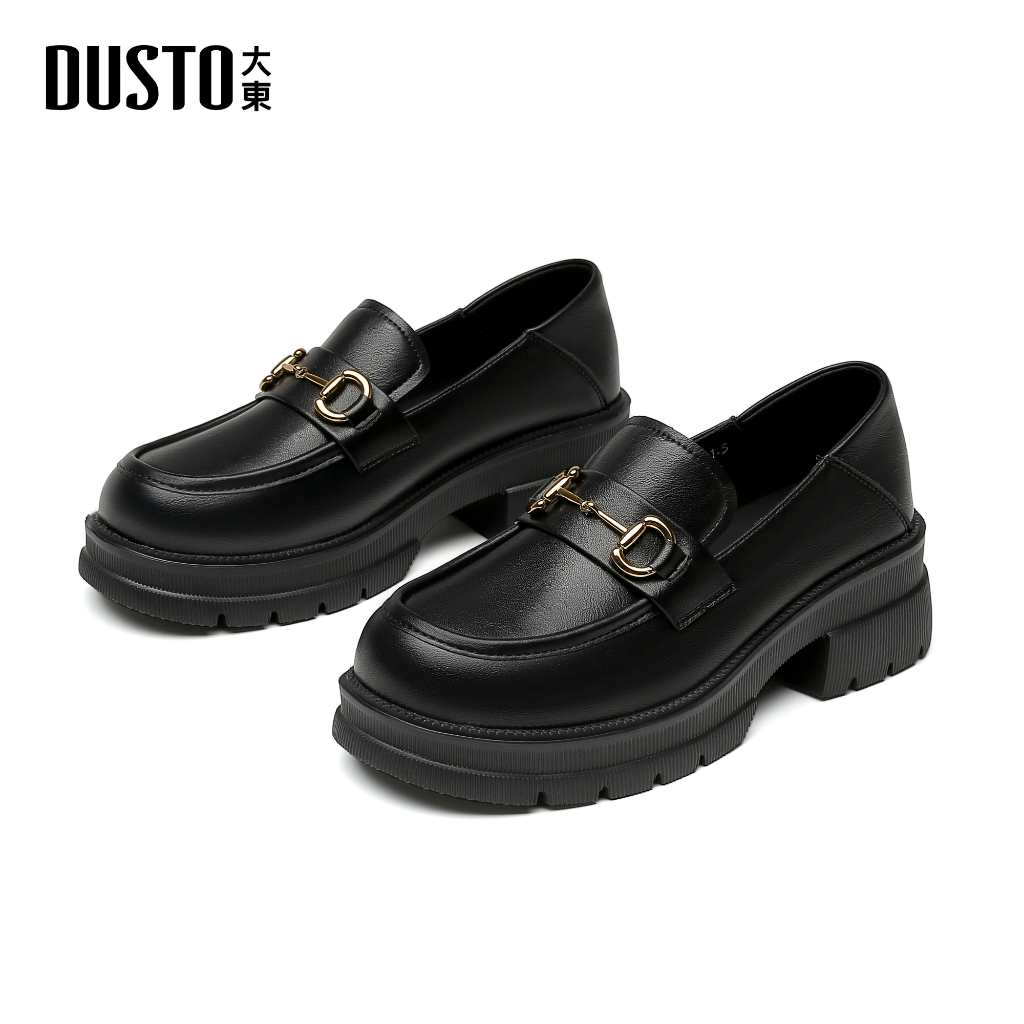DUSTO โลฟเฟอร์หนังดำหัวตัด ห่วงทองคู่ พื้นหนาซัพพอร์ตดี กันลื่น เหมาะทั้งทำงานและลุคเท่ หนังนิ่มใส่สบายตลอดวัน
