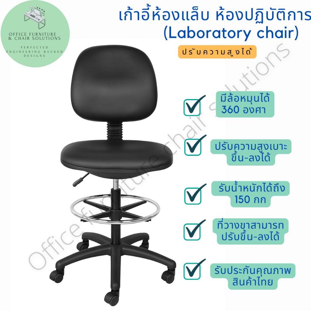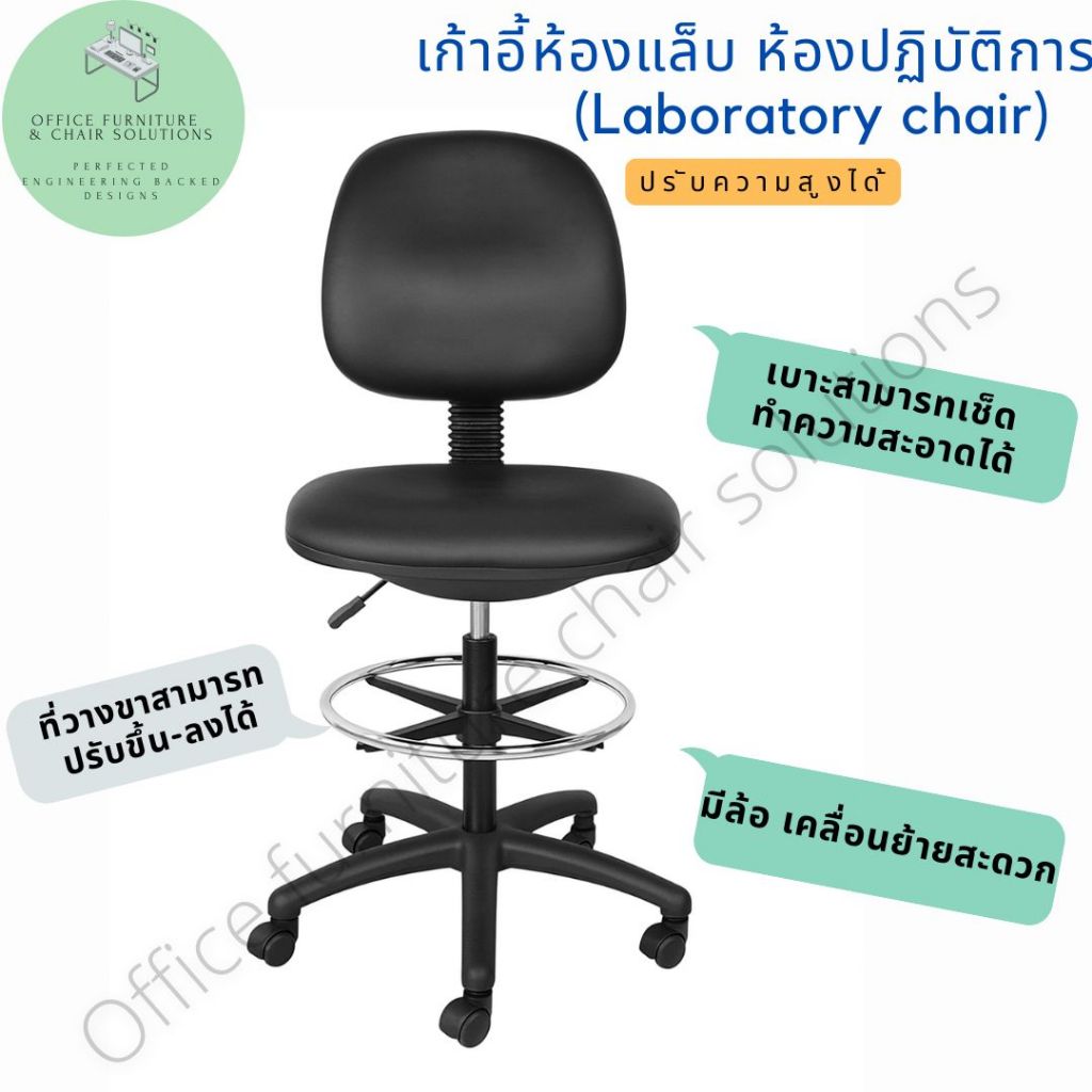 เก้าอี้ห้องแล็บ ห้องปฏิบัติการ เก้าอี้สำนักงาน PU มีพักเท้า ปรับระดับได้ ไม่ต้องประกอบ