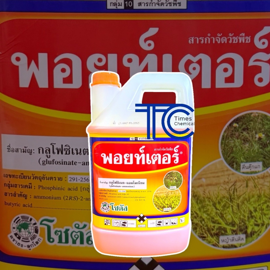 พอยท์เตอร์ 4 ลิตร กลูโฟซิเนต แอมโมเนียม กำจัดหญ้าชนิดเผาไหม้กึ่งดูดซึม น้ำส้ม โซตัส กำจัดหญ้า