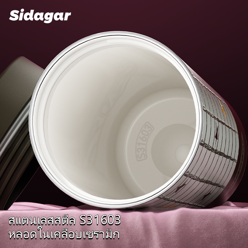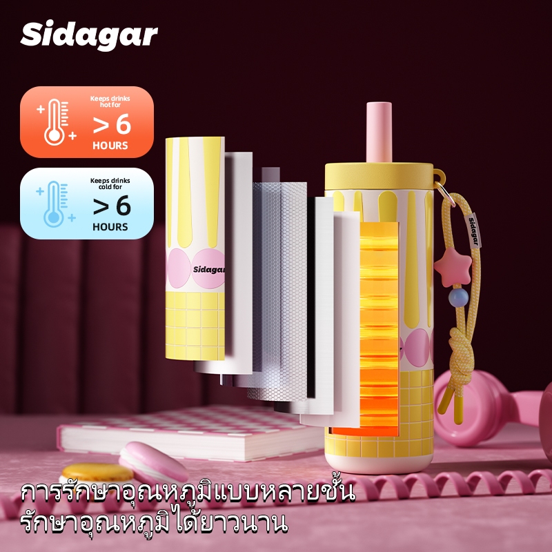 Sidagar แก้วเก็บความเย็น เคลือบเซรามิก ขนาด620 มล แฟชั่น แก้วน้ำเก็บความเย็น พร้อมหลอดดูด แก้วน้ํา