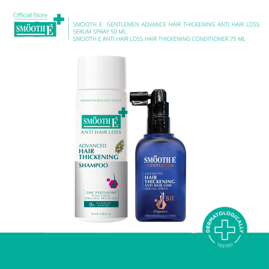 [แพ็คสุดคุ้ม] Smooth E Duo Anti Hair Loss Shampoo 75 ml. & Gentlemen Spray 50ml. แชมพูและสเปรย์ลดผมร่วง บำรุงจากรากผม