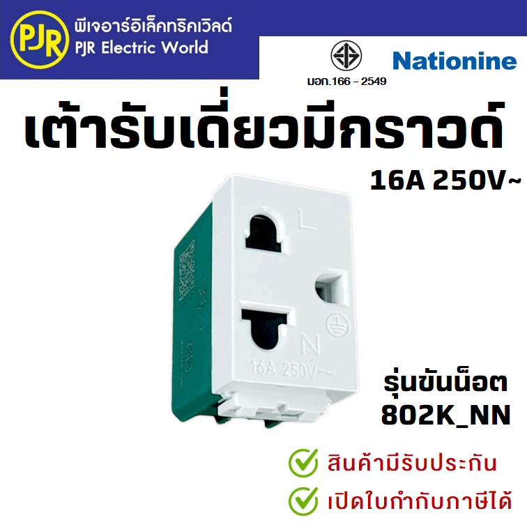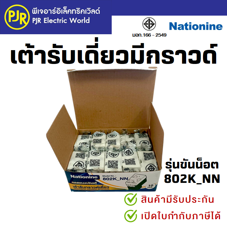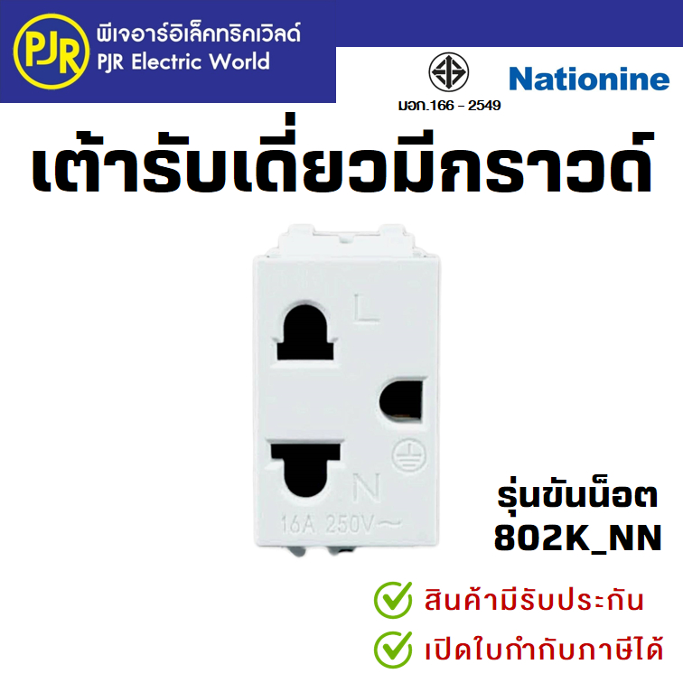 PJR *มีขายส่ง*ยกกล่อง10ชิ้น* ปลั๊ก เต้ารับเดี่ยวมีกราวด์ เต้ารับ (1ช่อง) แบบขันน็อต ยี่ห้อ เนชั่นไนน์ NATIONINE 802K_NN