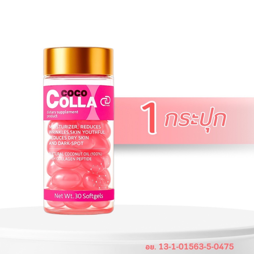 COCO COLLA ผิวนุ่ม เด้ง ใส ในทุกวัน เติมคอลลาเจน + น้ำมันมะพร้าวบริสุทธิ์ [กระปุก 30 ซอฟเจล]