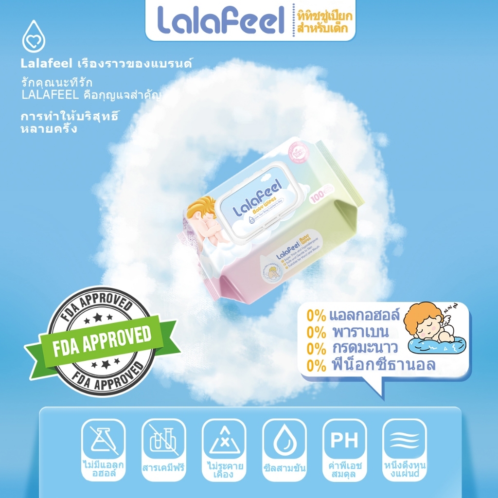 GAIFEEL LALAFEEL ผ้าเช็ดทำความสะอาดแบบเปียกกลิ่นเด็กสีชมพู 5 แพ็ค 500 แผ่น