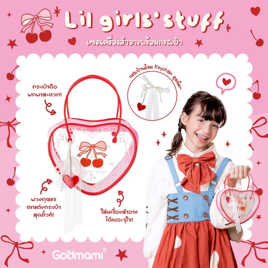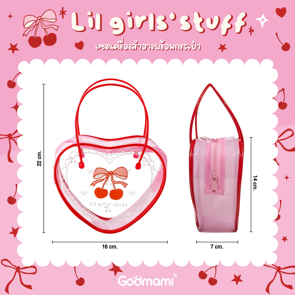 [ใหม่] Godmami เซตเครื่องสำอางเด็ก พร้อมกระเป๋าหิ้วลายเชอรี่ รุ่น Lil girls' Stuff