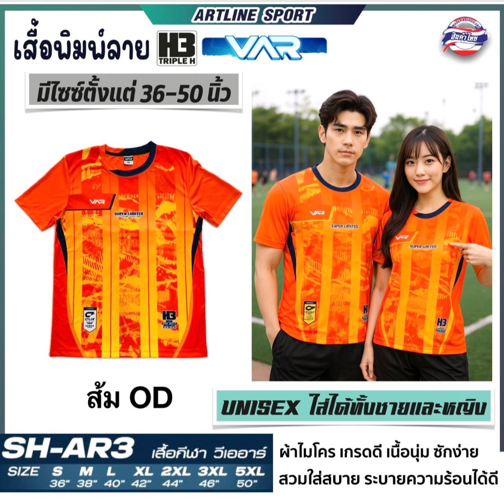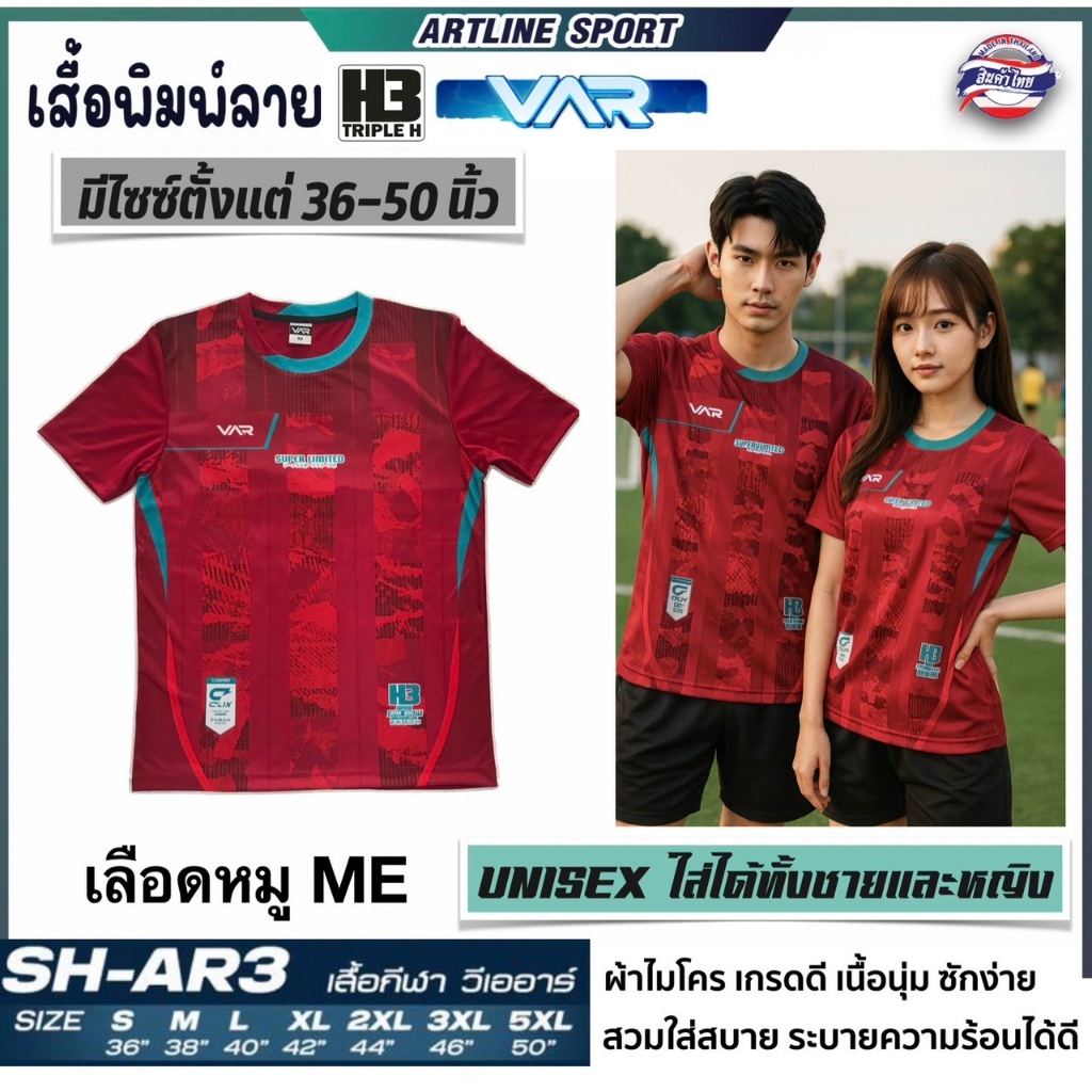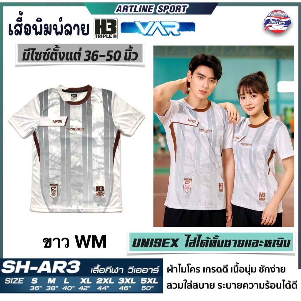 H3 SPORT เสื้อกีฬาพิมพ์ลาย รุ่น VAR-3 By H3. เนื้อนุ่ม ใส่สบาย (สินค้าไทย) - เสื้อกีฬาพิมพ์ลาย รุ่น VAR-3 BY H3 Spo