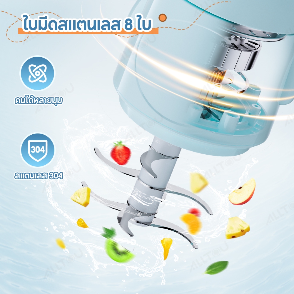 ALLTOU เครื่องปั่นอาหารเด็ก เครื่องปั่น ไฟฟ้า ปั่นอาหารเด็ก เครื่องบดอาหาร เครื่องบดไฟฟ้าอเนกประสงค์ วัสดุคุณภาพสูง เครื่องบด ใบมีดสแตนเลส ไฟฟ้า 350ML