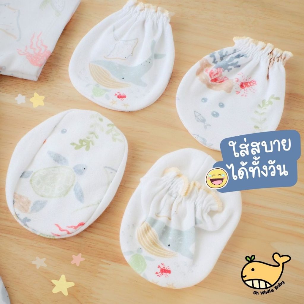 เซ็ตหมวก ถุงมือ ถุงเท้า เด็กแรกเกิด 0-3 เดือน ลาย Ocean of Love นุ่มพิเศษ ปลอดสารเคมี มีส่งด่วน