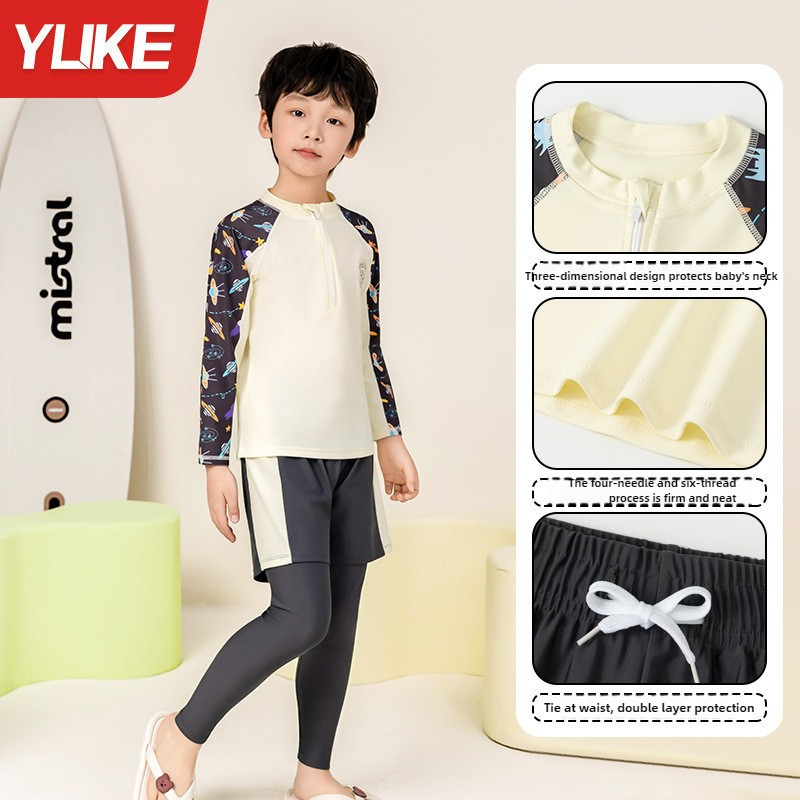 YUKE ของแท้ เด็กชายแยกแขนยาวกางเกงขายาวป้องกันแสงแดดเร็วแห้งซิปด้านบนชุดว่ายน้ำ kids swimsuit