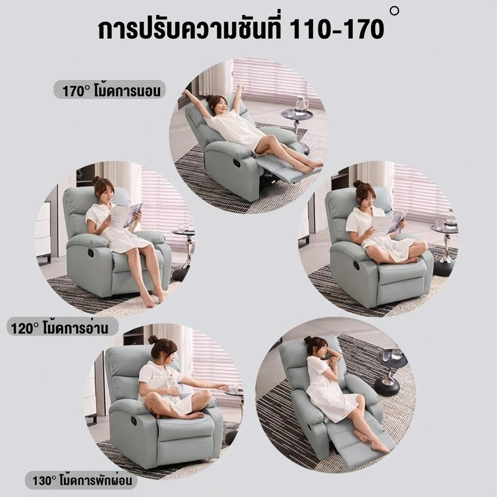 Esshelfโซฟาปรับเอนนอน ปรับมุมพิงหลังได้110-170 องศา เก้าอี้พักผ่อน เก้าอี้ปรับเอนนอนได้ มีที่วางแก้ว