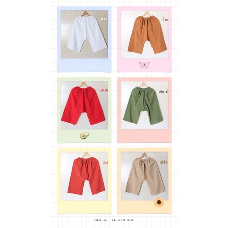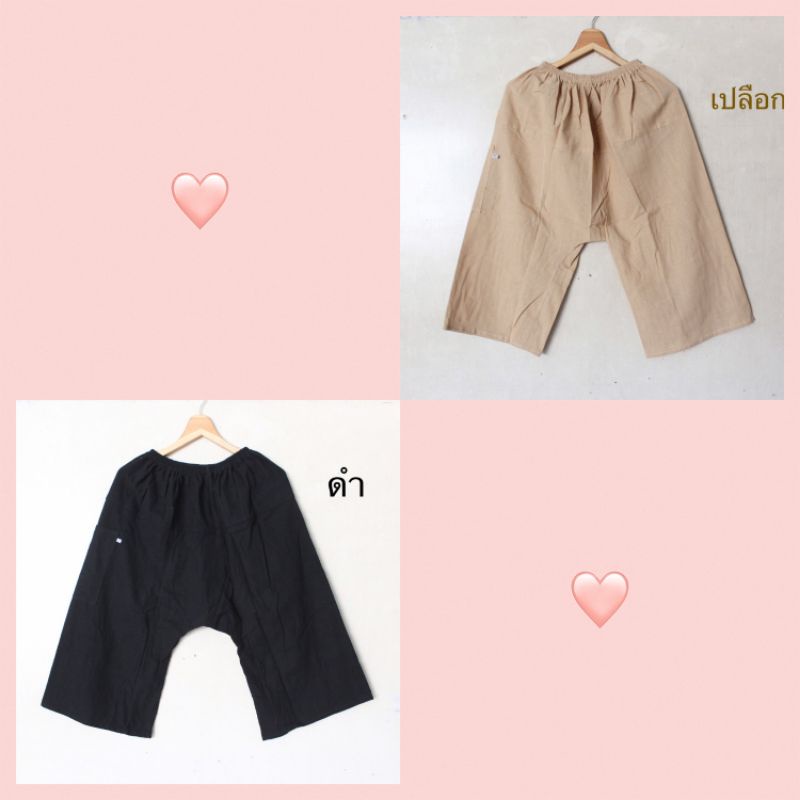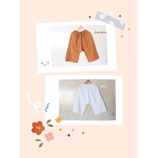 กางเกงผ้าฝ้าย ขาก๊วยผ้าฝ้ายเอวยืด