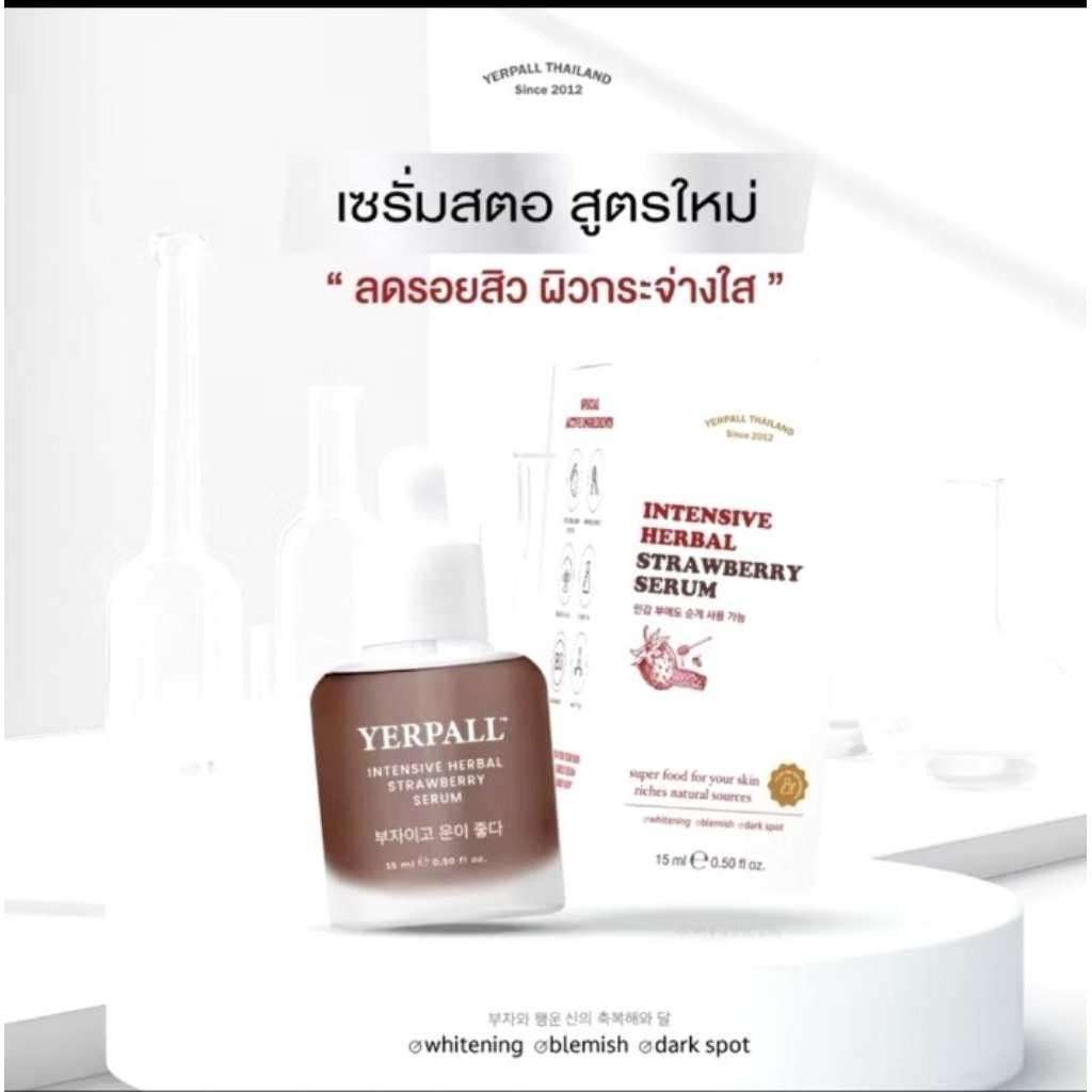 Yerpall เซรั่มสตอเบอร์รี่สูตรใหม่15ml. / ครีมโสมไฮยา10ml. ของแท้100%