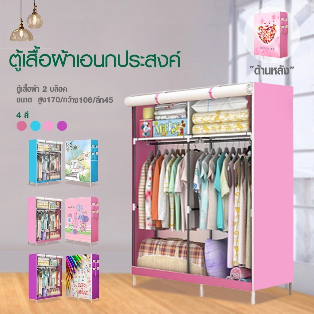 【รับประกัน 1ปี】HOMMY ตู้เสื้อผ้าเด็ก ลายการ์ตูน ผ้าคลุมหนากว่าเดิม เหล็ก 13 mm. จุได้ 60 กิโล #WD5.